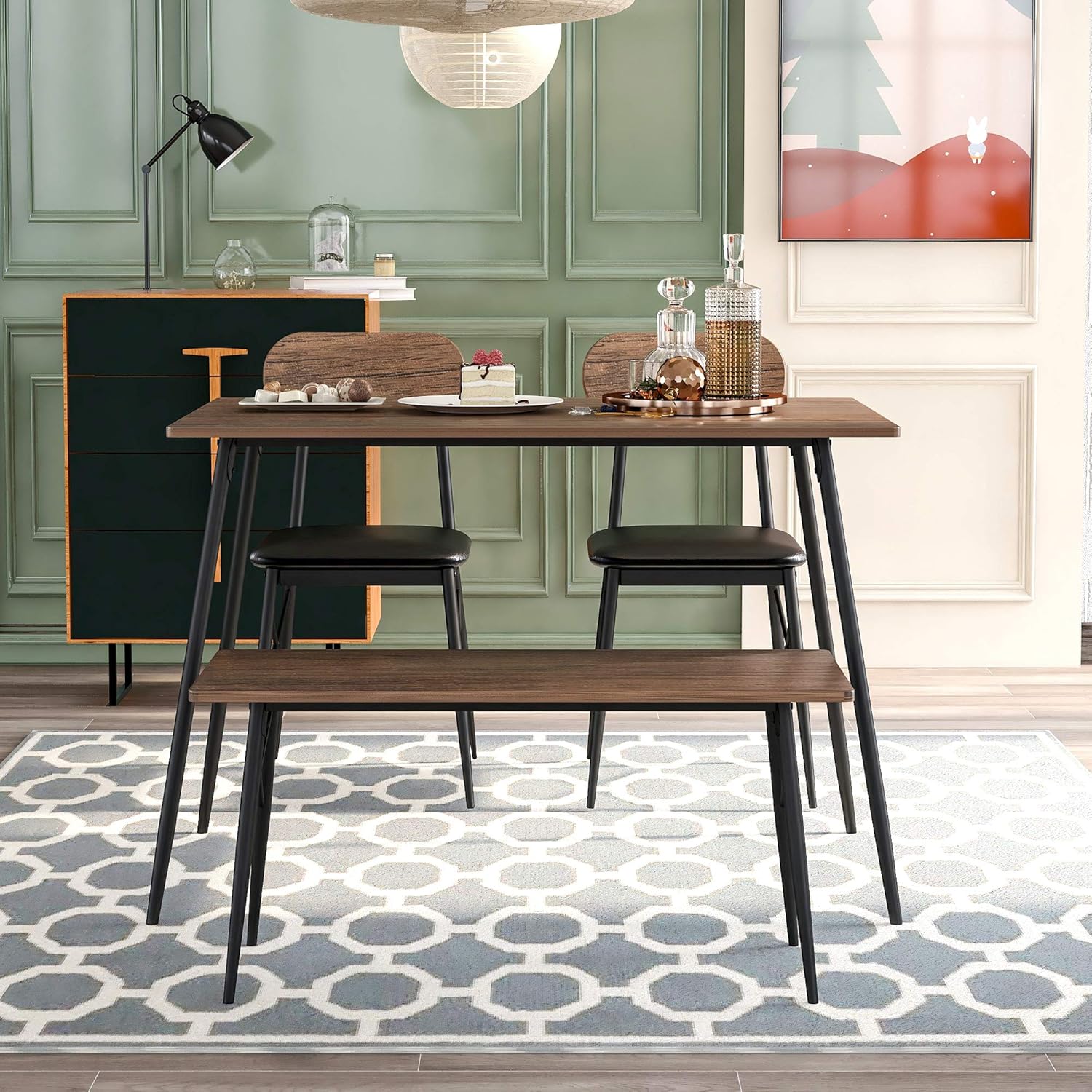 Once your mismatched bedding is accepted, all sales are final. This beautiful wooden dining set constitutes a perfect proposition for all. Compare similar dining room sets. Table can be extended with a center leaf. The finish is dark oak wood veneer. Contains one bench onlyfabric upholstered padded seatingaccented with distressed finishsupported on turned legsfeatures transitional style description: A simple and stylish way to add more seating to your dining room is to add a set of matching dining benches. Find new bench kitchen & dining sets for your home at joss & main. We swapped out our normal dining room chairs for a padded leather bench and the effect was charming, multifunctional and chic. Kealive dining table set with bench 5 pieces modern wood table top 2 benches and 2 stools, kitchen dining room furniture set 43.3''l x 27.6''w x 29.5''h metal frame, brown. Delicate floral motifs are featured on the gently. Great savings & free delivery / collection on many items. This product can expose you to chemicals including wood this table is good for a casual dining room.
