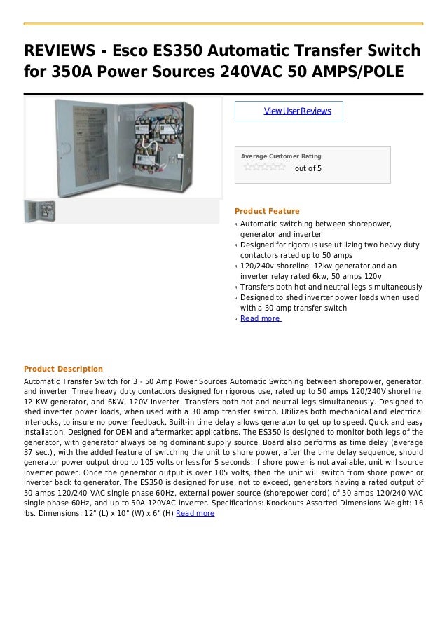 Esco 50 Amp Transfer Switch / Elkhart Supp LPT50BRD ESCO Automatic Transfer Switch - 50 ... / Safely connect an inverter and an ac generator to the same house wiring.